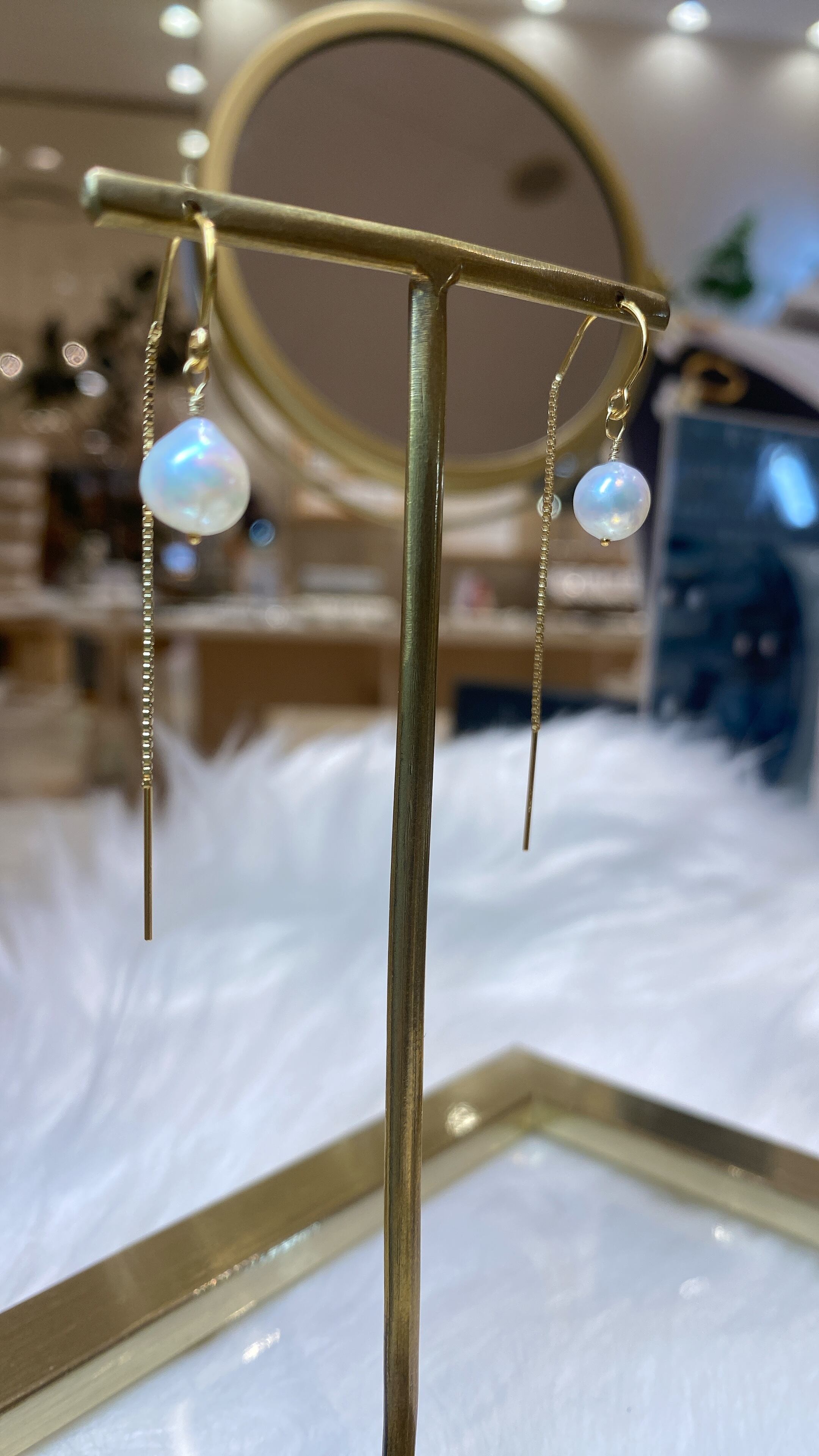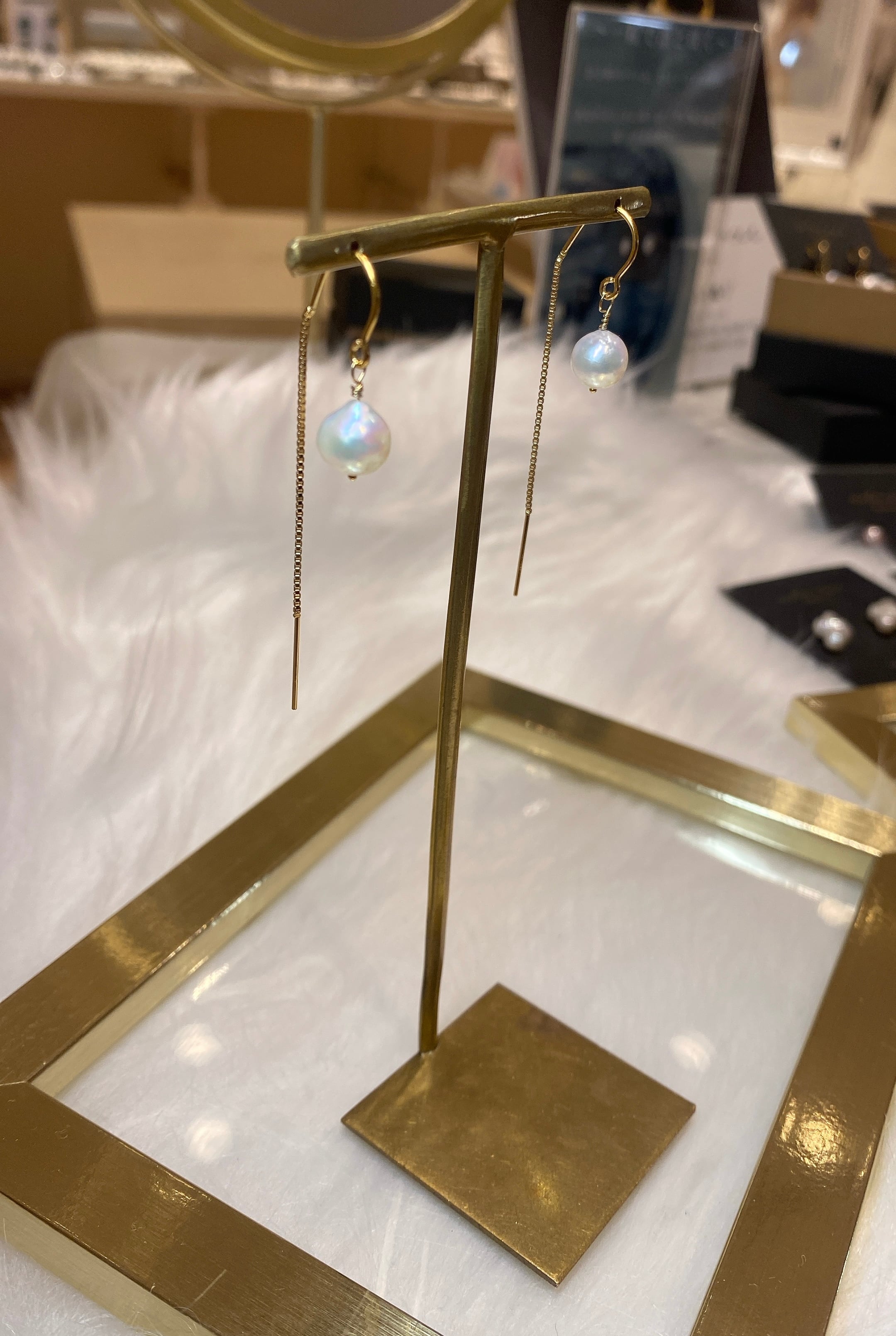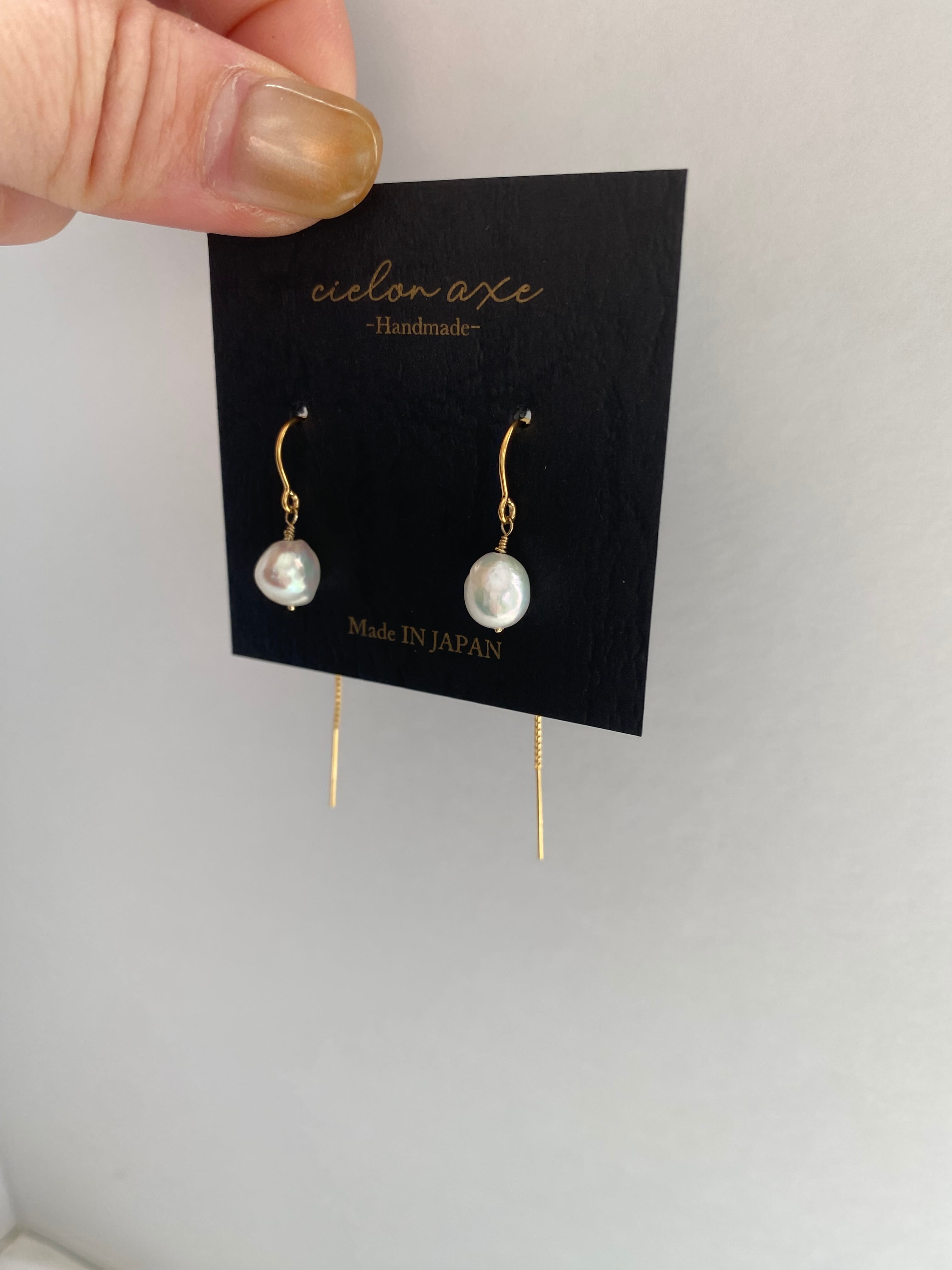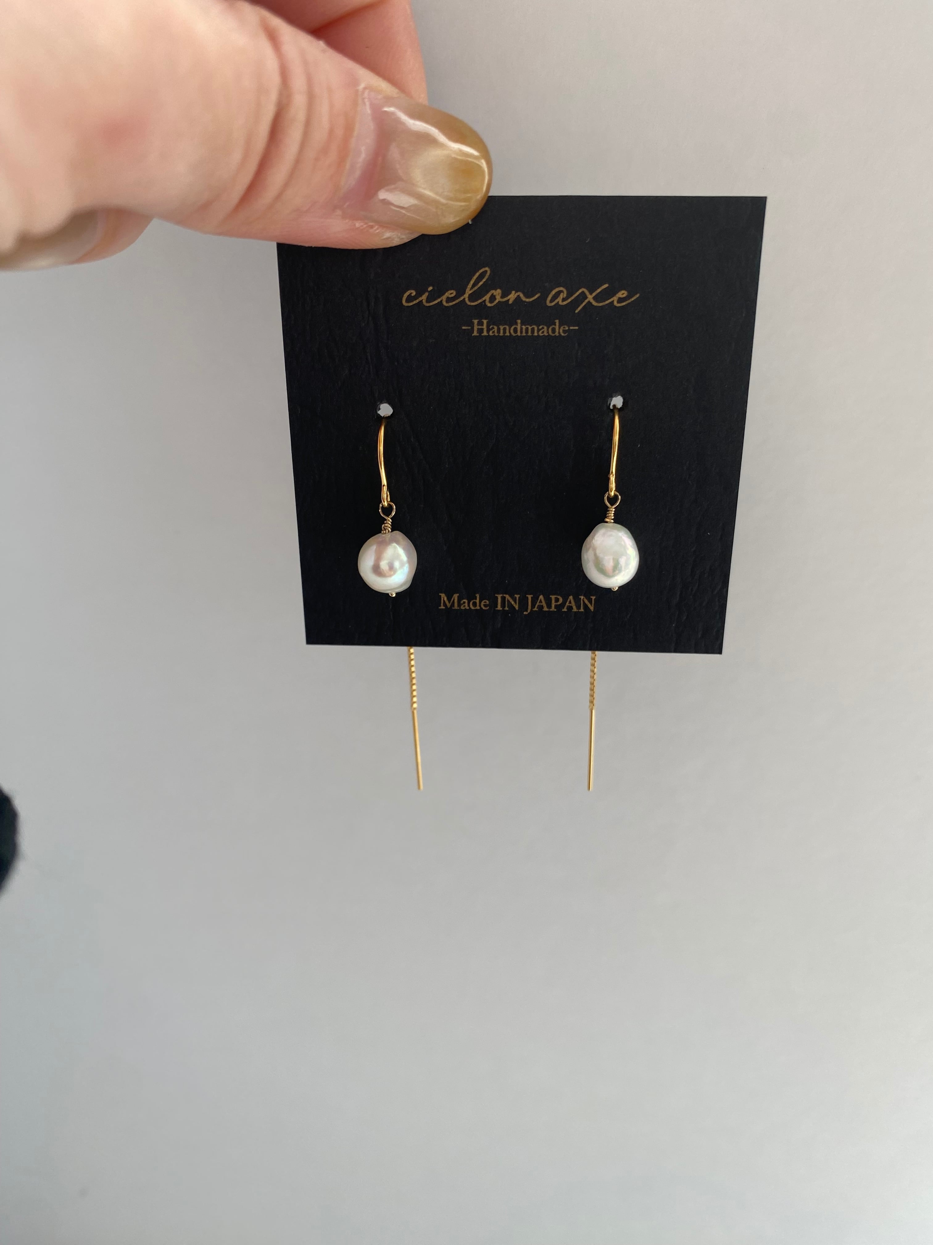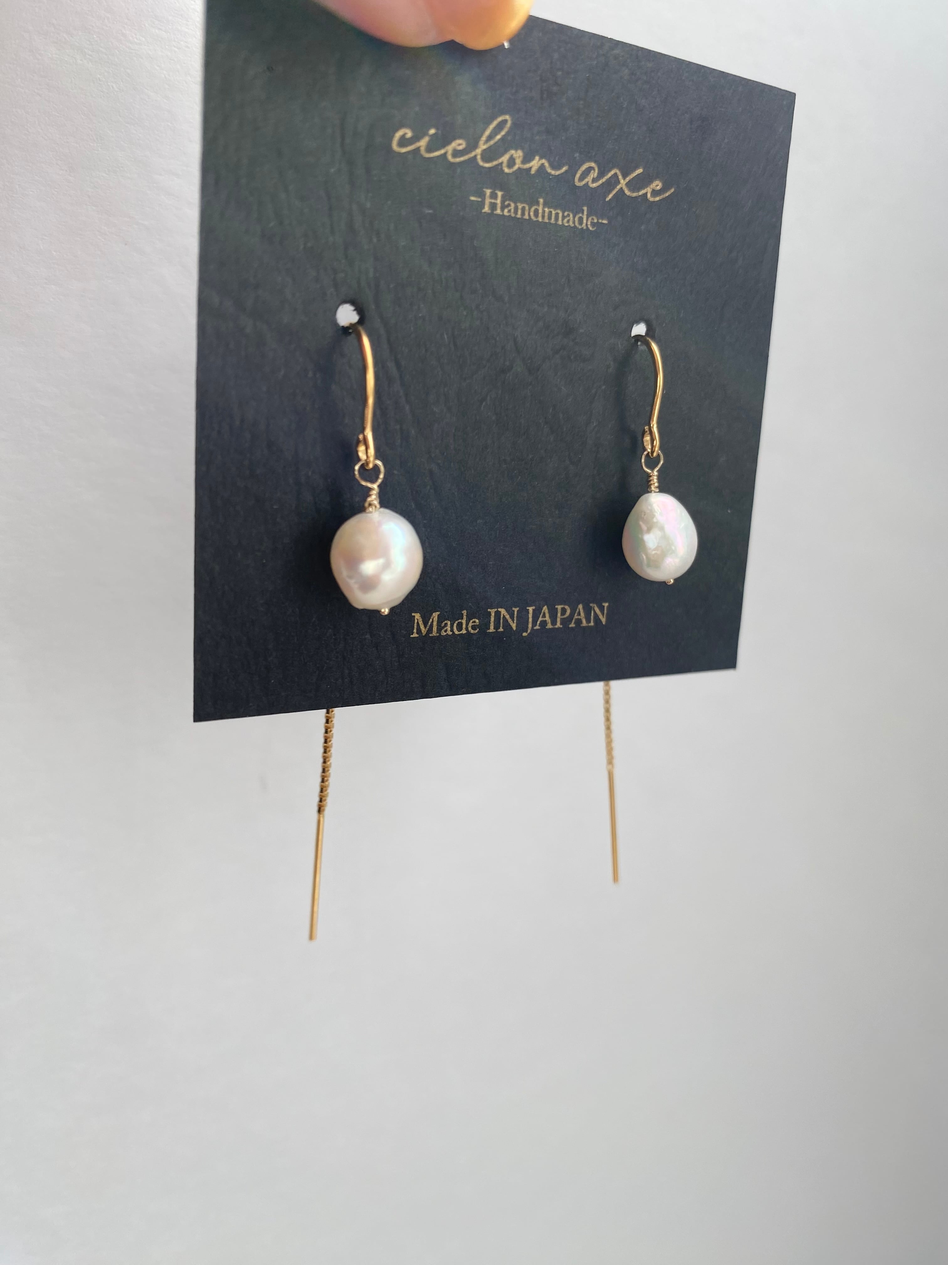 繊細なチェーンにあこや真珠が揺れるデザインは、動くたびに軽やかな輝きを添え、耳元を美しく演出。