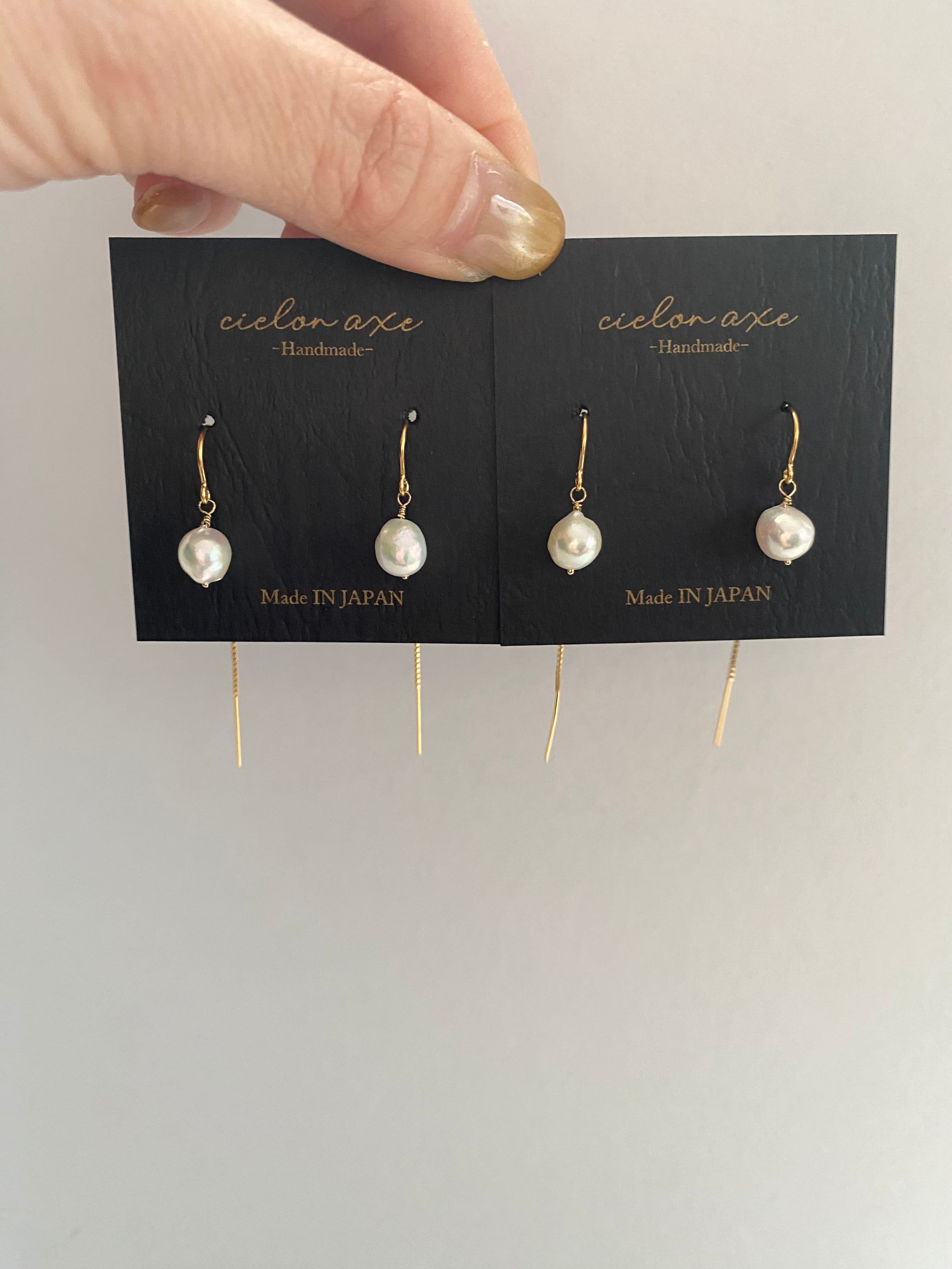 無調色のあこや真珠を使用した、上品で洗練されたアメリカンピアスです。