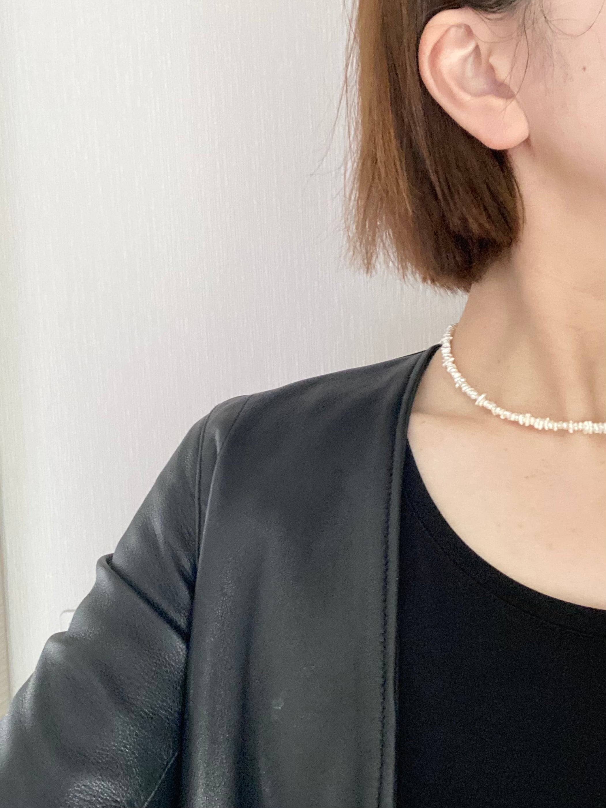 上品でありながら、どこかナチュラルな雰囲気も兼ね備えたデザインは、カジュアルからフォーマルまで幅広く活躍。1本で存在感のあるレイヤードスタイルを楽しむこともできます。